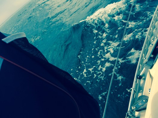 Sa démarche artistique est de déclencher l’appareil au moment où une grosse vague, et ici elles sont légion, la projette contre une cloison, la table du carré, un winch ou une porte.