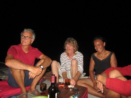Son couscous est vraiment délicieux. Nous le mangeons selon la coutume, avec les doigts, confortablement assis sur des coussins de plage à même les pontons en compagnie d’un jeune couple de baba cool suisses et de retraités français qui eux aussi vivent là depuis quelques années.