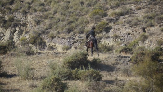 Après cet interlude cinématographique, nous nous arrêtons pique-niquer le long d’une petite rivière qui longe les parois rocheuses de la montagne. Alors que nous mordons dans notre sandwich au « jamon » Serrano (évidemment) surgissent de derrière le rideau d’une cascade un couple de mariés à moitié dans l’eau suivi par un cameraman et un assistant tenant un réflecteur. C’est la deuxième fois que nous assistons à ce genre de scène. La première fois c’était lors d’un mouillage dans une petite crique sur la route de Malaga à 200 kilomètres de là.