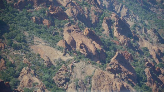 A mesure que nous avançons le trait de côte se fait plus dure, les lignes arrondies du littoral se fracturent, s’élèvent vers le ciel, la côte se métamorphose et notre estampe japonaise emprunte de douceur et d’harmonie se transforme progressivement en un décor peuplé de créatures étranges.