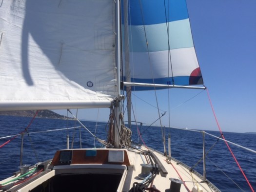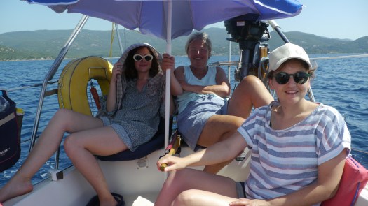 Laurence et moi avons toujours une légère appréhension lorsque les filles viennent à bord car toutes les deux en ont une sainte horreur. Or il se trouve que quelques jours avant d’arriver à Ajaccio, nous nous sommes baignés dans une baie où elles étaient légions et particulièrement venimeuses. Évidemment nous ne leur avons rien dit. Aussi c’est avec une grande discrétion qu’à peine arrivé, j’entreprends de faire le tour du bateau, les yeux rivés sur les fonds à la recherche de petites tâches bleuâtres. Ouf rien à signaler !