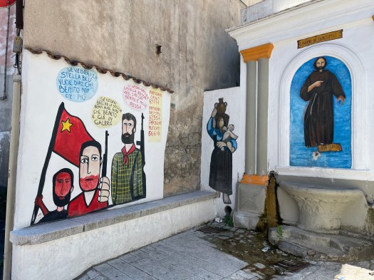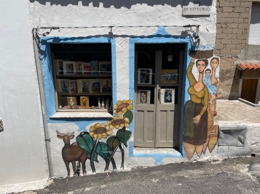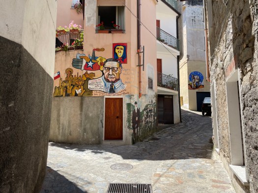 Pour tromper notre attente nous décidons d’aller faire un tour dans la montagne sarde et de visiter le village d’Orgosolo réputé pour ses fresques politiques.