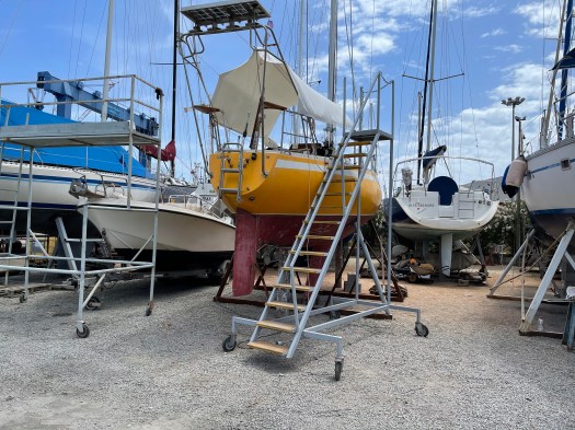 Nous pensions passer trois ou quatre jours au chantier, le temps de faire les réparations d’usage,l’antifouling et autre polishage mais finalement ce délai fut largement dépassé.