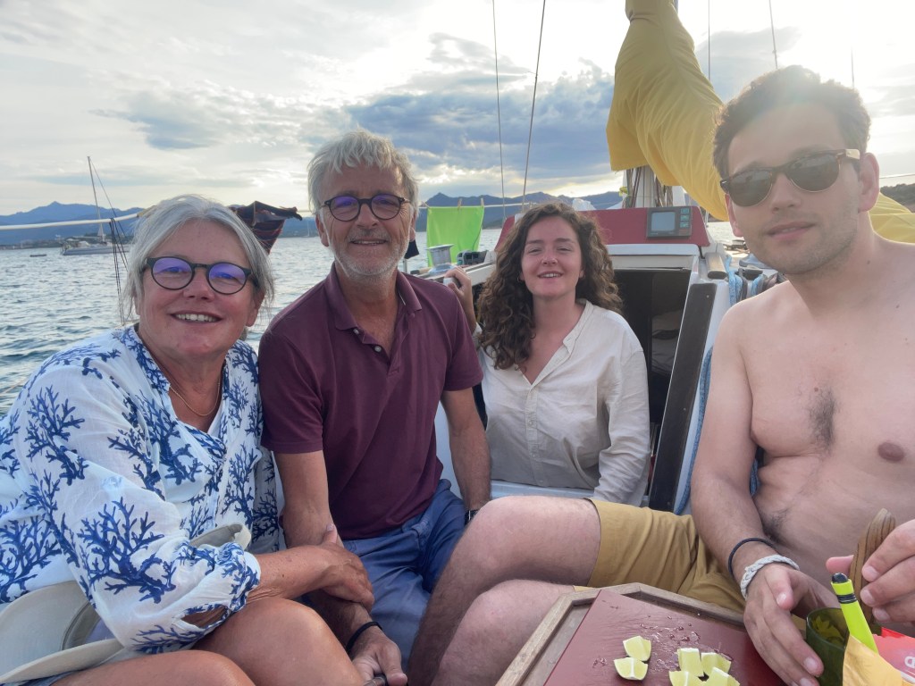 Aujourd’hui nous sommes allés chercher Adrien à l’aéroport d’Olbia. Nous voici donc tous les quatre réunis avec Laura comme lors de notre première croisière à bord d’Omer.