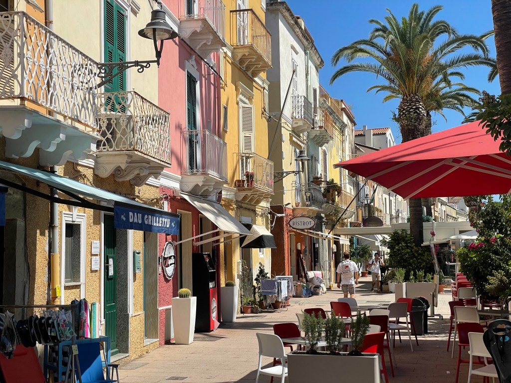 C’est une petite ville vraiment charmante avec ses façades colorées et sa grande place ombragée où des bancs installés autour des troncs d’arbres servent aux anciens qui peuvent ainsi papoter et surveiller du coin de l’œil une marmaille bruyante. C’est aussi une île dotée de belles plages desservies par un car qui emporte toutes les heures des bandes d’ados chahuteurs. Mais Carloforte c’est surtout Carmela à qui nous rendons visite chaque jour dans l’espoir que notre joint tournant soit arrivé.