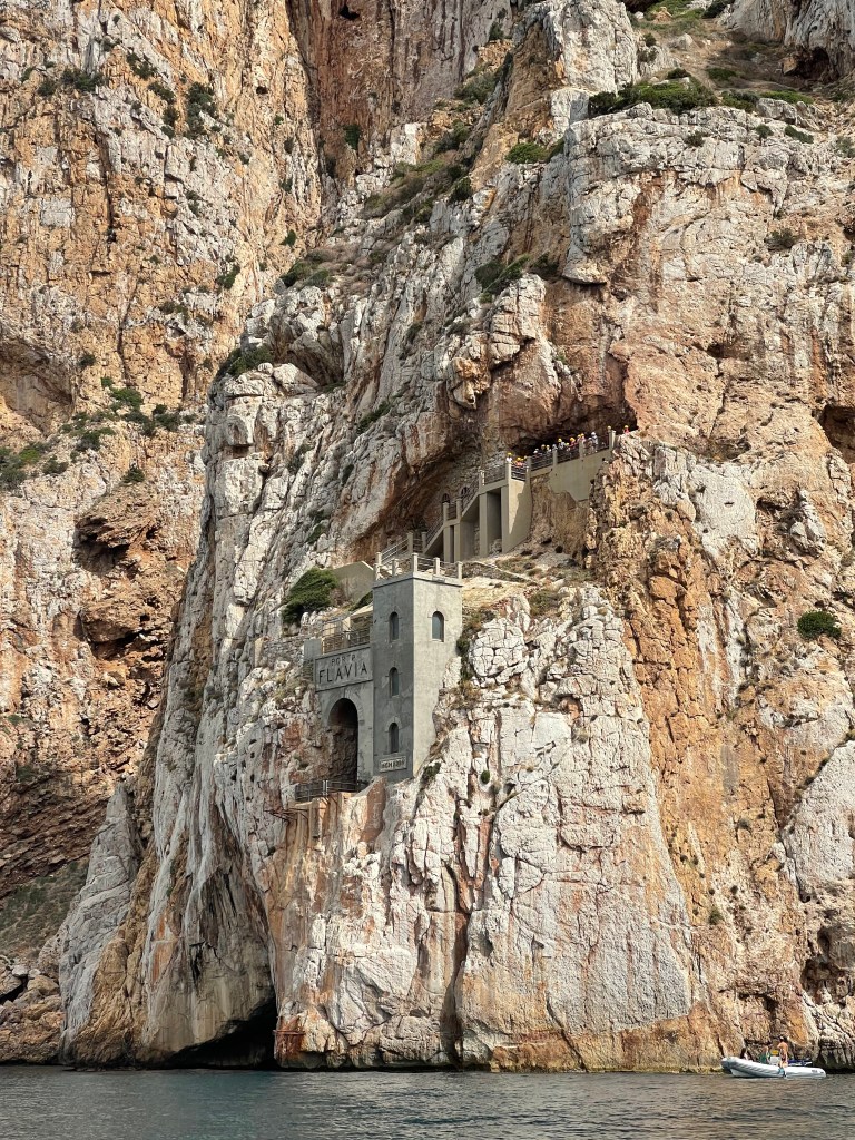 Au passage nous longeons la falaise dans laquelle ont été creusées des galeries pour exploiter le cuivre. Aujourd’hui la mine est désaffectée mais il reste encore l’entrée principale creusée dans la roche et sa façade ouvragée surplombant la mer qui permettait de charger le minerai dans des bateaux mouillés en contre bas. On dirait vraiment un décor de cinéma à la Indiana Jones.