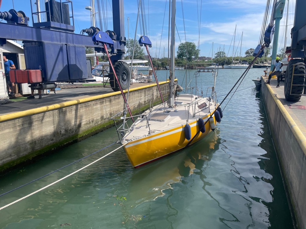 Omer good ! whaouh ! C’est la première fois en sept ans qu’Omer est prêt à être mis à l’eau le jour même de notre arrivée. Jusqu’à présent il y avait toujours un mais…mais là pas de mais en vue.