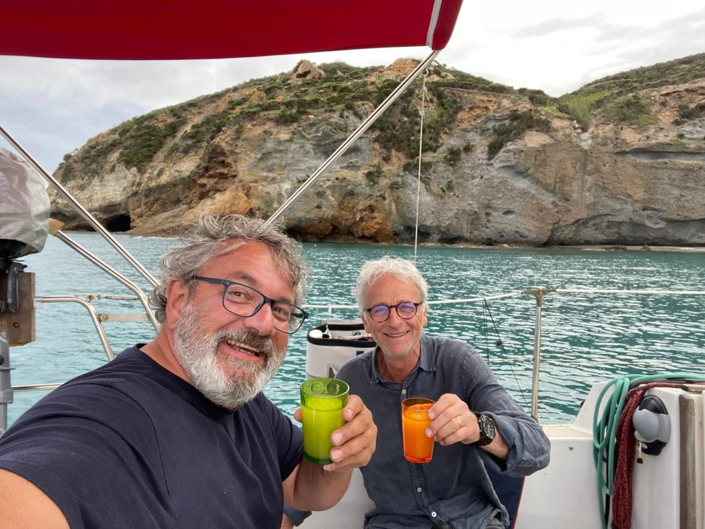 Omer est amarré à couple d’un autre voilier. La manœuvre s’est passée sans encombre malgré le fort courant du Tibre. Ouf, une autre case de cochée !