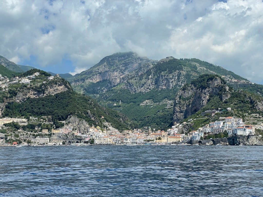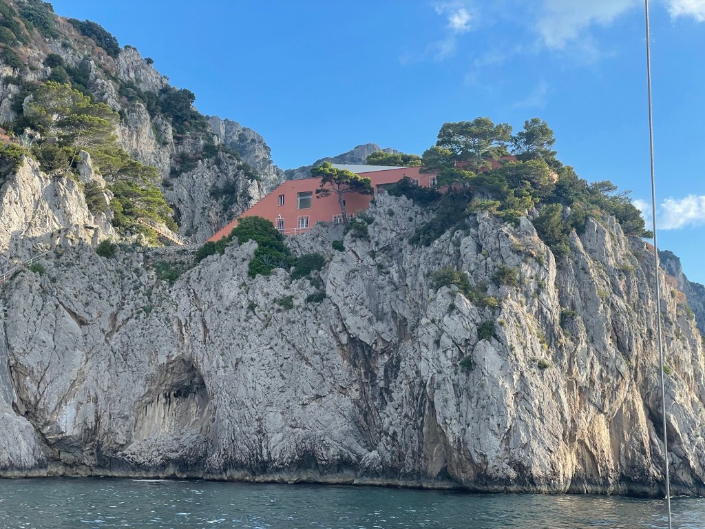 Nous passons entre les deux gros rochers de la Punta Tragara avec toujours ce sentiment d’être des Lilliputiens. En longeant la maison Malaparte où fut tourné le Mépris, nous avons une petite pensée pour Godard et surtout une grosse pensée pour les courbes harmonieuses de Brigitte Bardot dévoilées dans une célèbre scène où elle est allongée nue sur un lit. Mais bientôt BB n’est plus qu’un souvenir car nous voilà longeant la célèbre côte Amalfitaine.