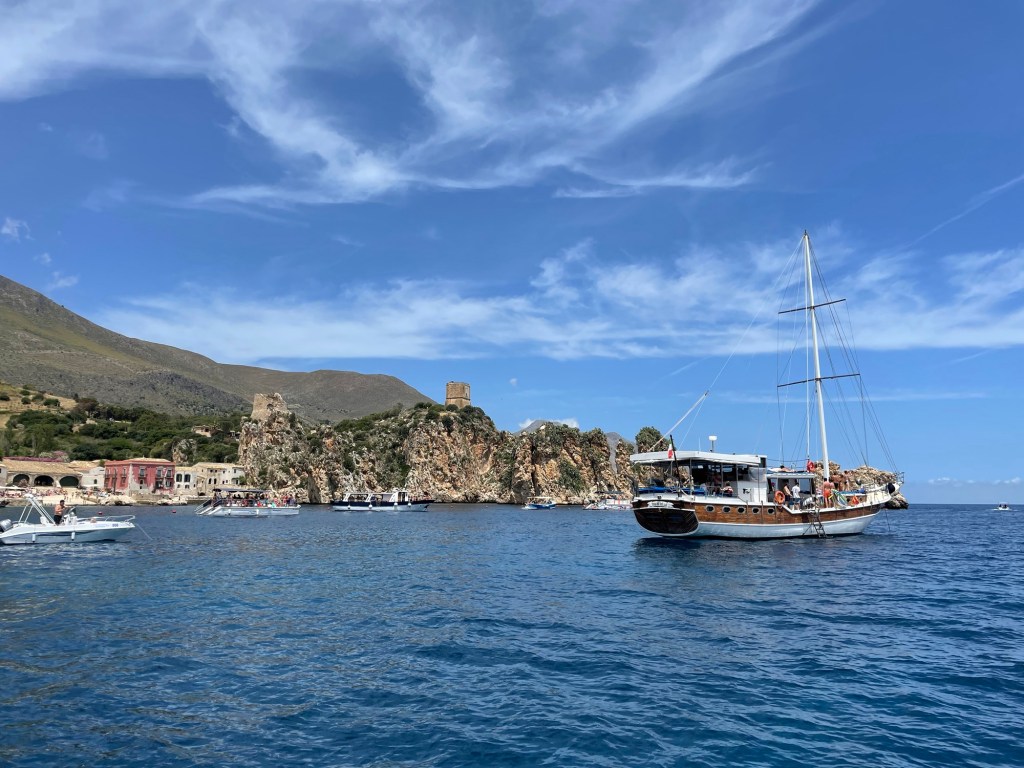 Le lendemain nous filons à Scopello où nous avions loué il y a une quinzaine d’années une petite maison de berger perché en haut d’une hauteur. L’endroit a un peu changé mais cette ancienne thonerie avec ses grands rochers qui sortent de l’eau est vraiment l’un des plus beaux endroits sur la côte sicilienne.