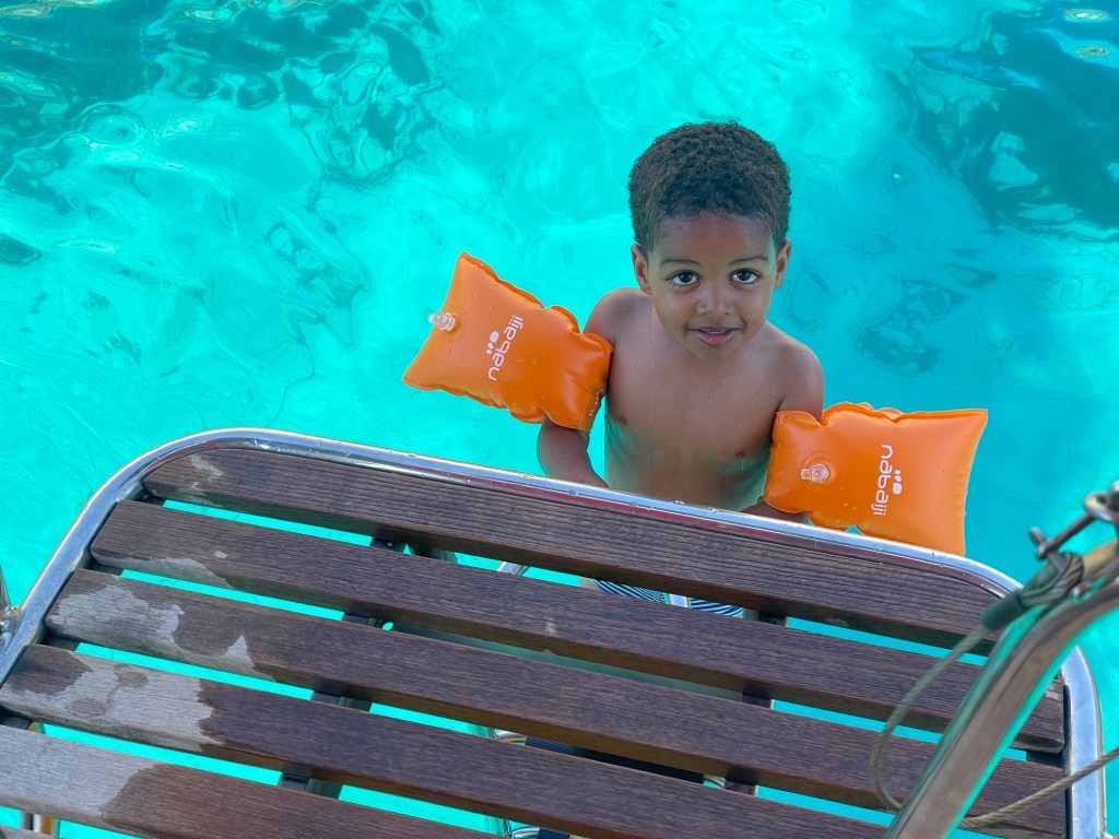 Est-ce la vue de tous ces gens plongeant dans l’eau ou l’envie lui aussi de faire le show ? Toujours est-il que Noah qui jusqu’à présent était un peu réticent à l’idée de sauter dans l’eau, tenta son premier saut du haut de la petite margelle en bois à l’arrière d’Omer. Une première réussie qui l’incita à en tenter une deuxième, puis une troisième, une quatrième etc.
