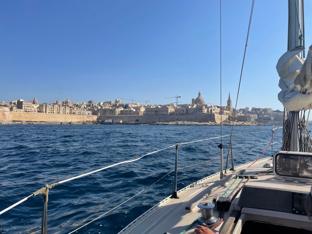 Après un dernier bain matinal dans les eaux bleu-turquoise du pays de Peter Pan, nous décidons de lever l’ancre pour nous rendre à La Valette.