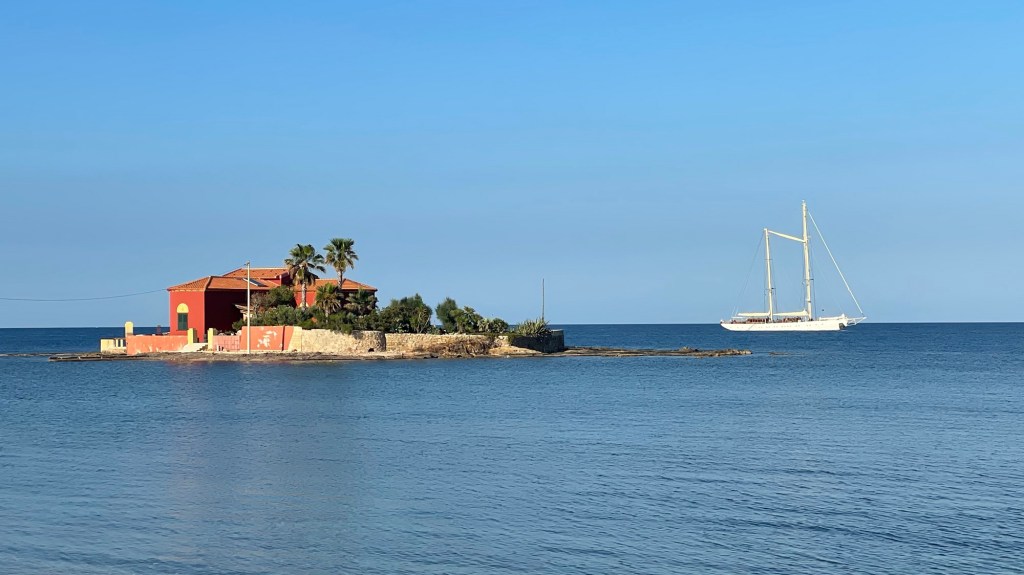 Après Pozzallo, nous avons fait halte à Marzammemi où Deck, un vieux labrador tout brinquebalant nous a accueilli au ponton avec un grognement digne d’un grognard qui aurait fait la retraite de Russie. Deck a un maître, un vieux sicilien lui aussi tout brinquebalant qui gère la marina avec ses deux fils qui filent comme deux lévriers sur les pontons. Allez comprendre…