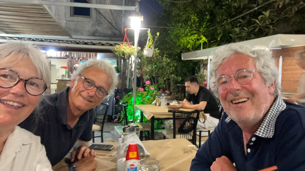 1. Trop sympa de vous lire apres cette brillante traversée de la mer ionienne et toujours avec la plume inspirée de ptit Hugo 👍 bravo à vous 3 bravo Lolo et Hugo de continuer ainsi votre périple omerien dans un si joli petit bateau jaune 👏 on vous envoie un tout petit peu de fraîcheur de La Trinité où il n’a fait que 30 degrés au plus aujourd’hui 🥵 bisous Ariane et Pat