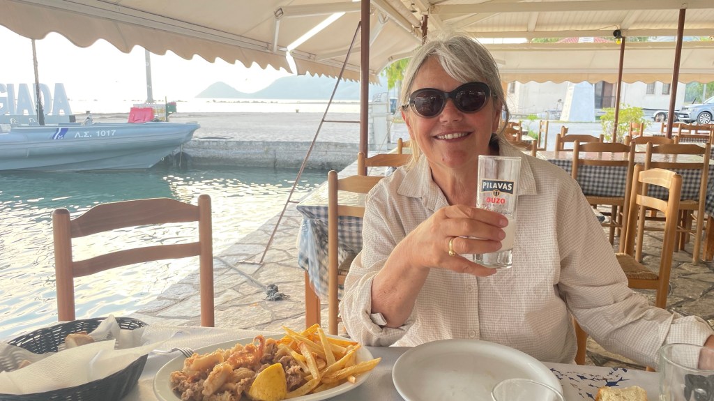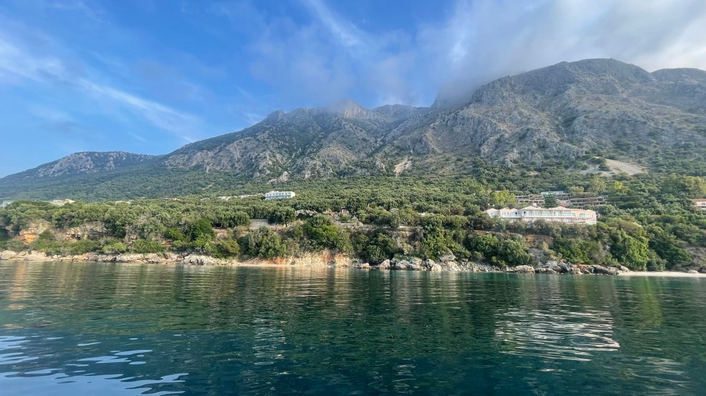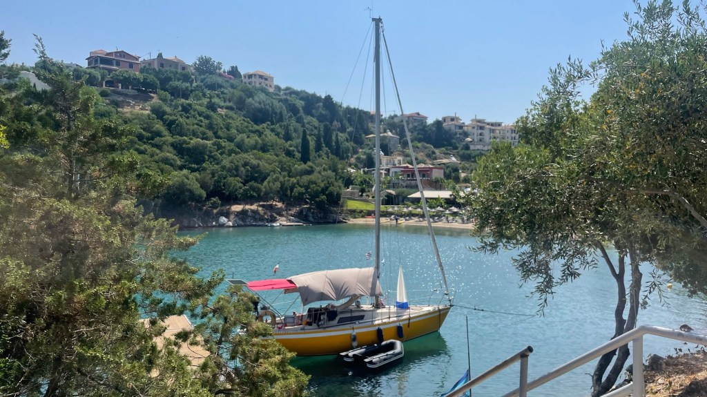 Ce soir nous étions au mouillage au milieu d’autres bateaux qui comme nous avaient jeté l’ancre dans le magnifique site de Syvota. Nous étions tranquillement assis dans notre cockpit entrain d’assister au coucher du soleil lorsqu’arriva l’instant magique où les bruits familiers du jour s’apaisent, où la lumière aveuglante s’estompe.